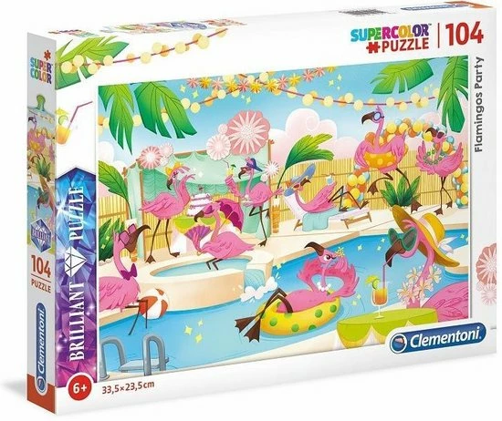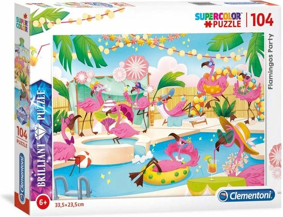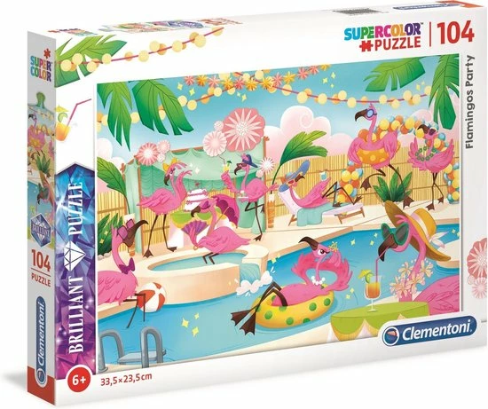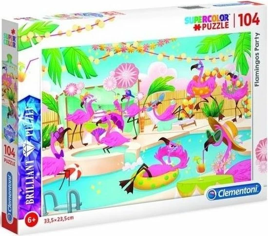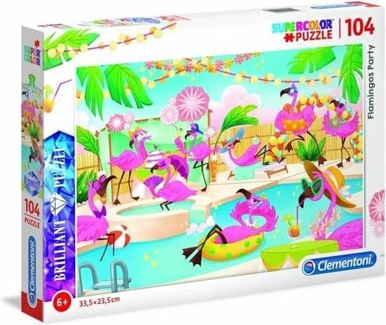 Clementoni – Briljant Puzzel – Flamingos Party – 104 Stukjes, Puzzels Kinderen