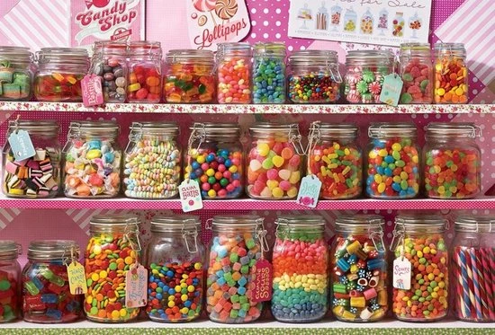 Een heerlijke snoeppuzzel van Cobble Hill met 2000 stukjes. De stukjes hebben aparte vormen.
