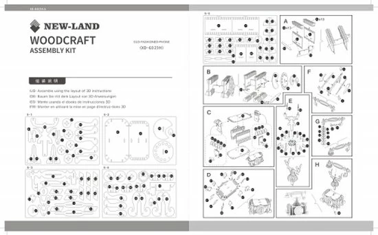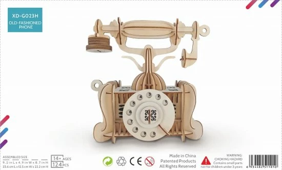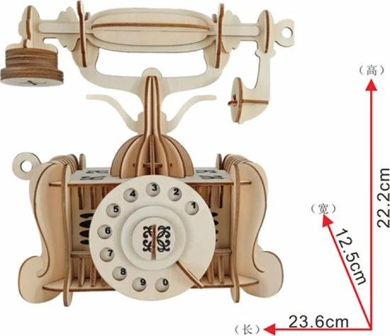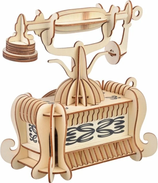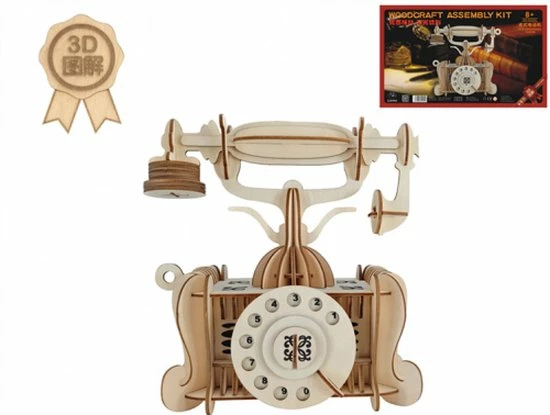 Houten bouwpakket van een vintage Telefoon