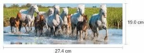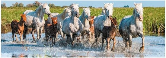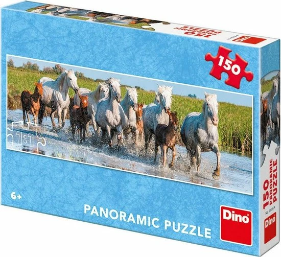 Wilde Camargo-paarden zullen je daarbij helpen – zelfs de meest onrustige kinderen zullen zich vermaken met de paarden afgebeeld op deze panoramische puzzel van 150 stukjes.