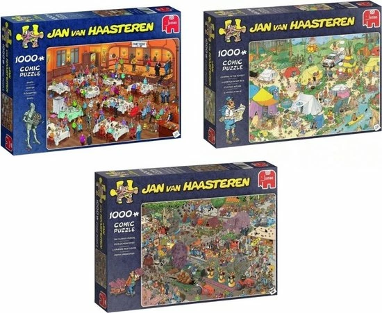 Zodra je begint met puzzelen stuit je op het ene na het andere hilarische tafereel. Jan van Haasteren heeft ook deze keer weer laten zien dat humor op een prachtige manier kan worden verwerkt in een puzzel. Jan van Haasteren puzzels zijn puzzels met veel kleur en details. Jan van Haasteren tekent al decennia lang humoristische platen die je steeds weer verrassen en laten lachen. De echte fans kennen de specifieke kenmerken van Jan van Haasteren en zoeken in elke puzzel direct naar de haaienvin, Sinterklaas, de handjes, het kunstgebit en Jan’s zelfportret. Jumbo heeft tientallen Jan van Haasteren puzzels in de collectie van 54 tot maar liefst 5.000 puzzelstukjes.