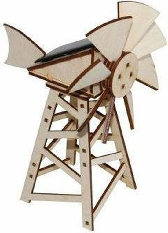 Vroeger werden deze Amerikaanse windturbines ingezet voor het vervoeren van water of olie van winderige of verre plaatsen. Bij dit model zorgen de zonnecellen ervoor dat de impeller aangestuurd wordt bij voldoende zonlicht. Het gedetailleerde bouwpakket is eenvoudig in elkaar te zetten. Een mooi model met een technische uitstraling.