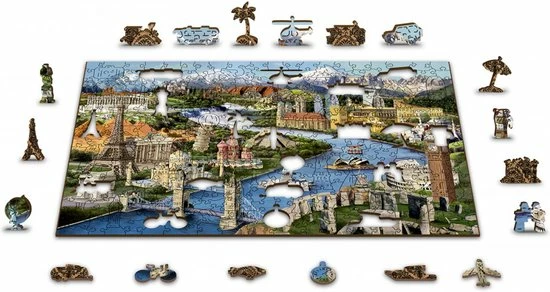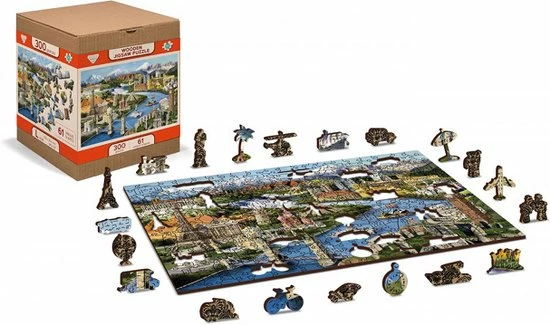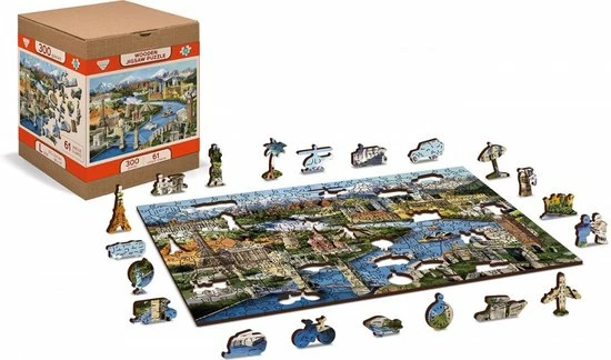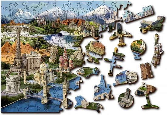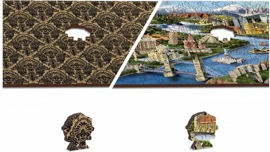 Je ziet meteen dat de Wooden City puzzels geen gewone puzzels zijn. Individuele puzzelstukjes hebben bijvoorbeeld niet de gebruikelijke vorm die we van een puzzelstuk gewend zijn. Bij deze puzzels heeft elk stuk een vorm die te maken heeft met het hoofdthema van de puzzel. Daarnaast zijn deze puzzels gemaakt van hout, waardoor ze stevig en duurzaam zijn. Elke puzzel wordt geleverd in een mooie doos met een afbeelding van het eindresultaat. Door de juiste puzzelstukjes te plaatsen, komt er een prachtig beeld van verschillende bekende bezienswaardigheden van over de hele wereld tevoorschijn.