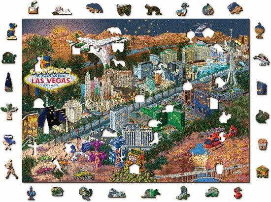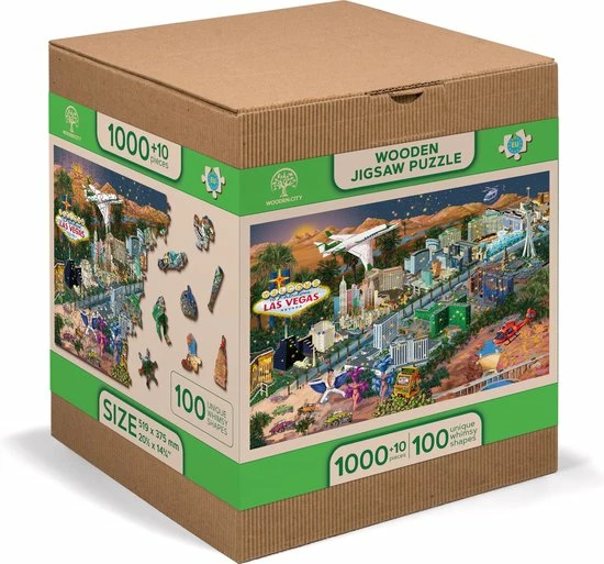 - Product: Wooden City Welkom in Las Vegas XL – Houten Vormpuzzel – 52×37,5 cm – 1000 stukjes